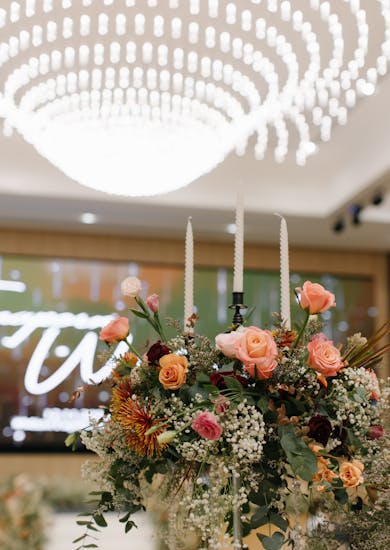 งานฉลองเย็นจัดที่ห้อง Dimond Ballroom เพราะประทับใจกับแชนเดอเลีย การตกแต่งสวยงาม เพดานสูงโปร่ง แล้วก็พื้นที่หน้าห้องจัดงาน ตรงห้องโถงกว้างมาก สามารถตกแต่งพื้นที่หน้างานได้เยอะ อีกส่วนหนึ่งชอบในเรื่องของมีจอ LED ขนาดใหญ่ที่เวลาทำเป็นแบ็คกราวด์หลังเวทีแล้วสวยมากค่ะ