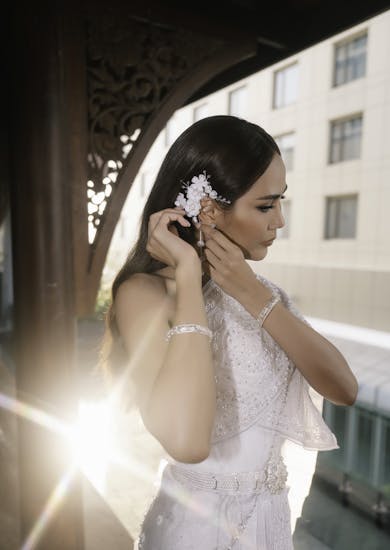 ในงานพิธีเช้า ฝนเลือกจัดเป็นพิธีไทยเพราะมันเป็นครั้งหนึ่งในชีวิตและไม่บ่อยนักที่เราจะได้ใส่ชุดไทย ครอบครัว ญาติ เองก็อยากให้ฝนได้จัดพิธีแบบไทย เราเลยมองหาสถานที่ที่ตรงกับธีมของเรา ก็มาเจอเรือนทิพวรรณนี่แหละค่ะ คือเรารู้สึกว่ามีโซน Outdoor แล้วบรรยากาศด้านนอกกับด้านในก็ค่อนข้างแตกต่างกัน ซึ่งเราก็รู้สึกว่าได้หลายบรรยากาศดี รวมกับที่ใจของฝนอยากใส่ชุดไทยสีขาว ตอนที่ได้เห็นห้องนี้ภาพบรรยากาศของงานก็เข้ามาในหัวเลย รู้สึกว่าคือไทยโมเดิร์นอย่างที่ชอบเลยค่ะ