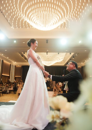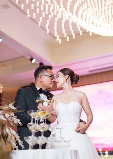 สำหรับงานเลี้ยงเราเลือกห้อง Diamond Ballroom เพราะดูที่จำนวนคนเป็นหลักก็จริง แต่ที่ชอบเป็นพิเศษเลยคือจอที่กว้างและยาวแทบจะเท่าความกว้างห้องเมื่อเทียบกับห้องอื่นๆ ซึ่งเรารู้สึกว่ามันว้าวมากทั้งสำหรับเราและสำหรับแขก แล้วพอได้ภาพในงานออกมาก็รู้สึกว่ามันสวยจริงๆ ค่ะ