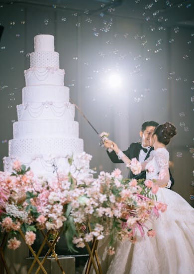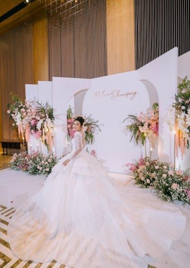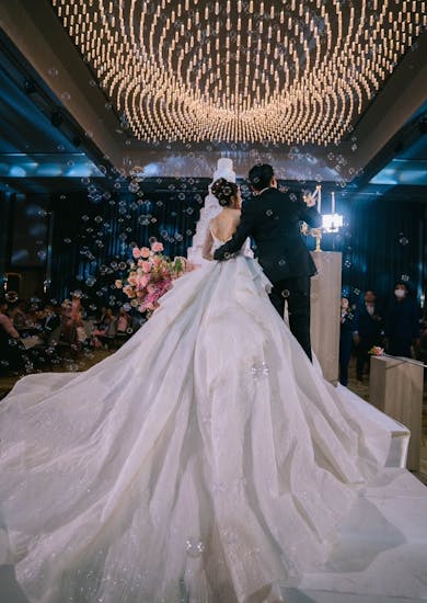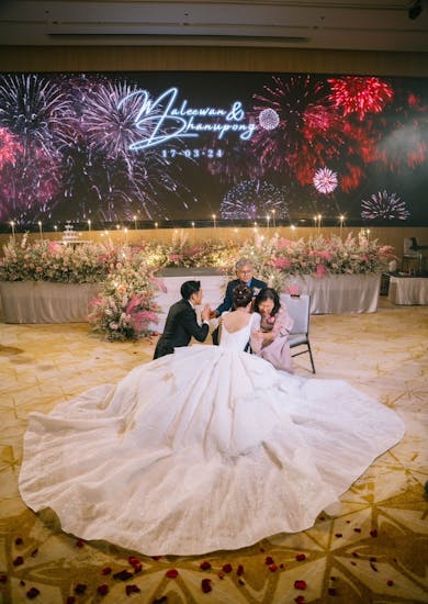 นอกจากการตกแต่งแล้ว ห้องก็เป็นอีกหนึ่งปัจจัยที่ช่วยทำให้บรรยากาศงานดูดีได้ เราจึงเลือกใช้ห้อง Diamond Ballroom ที่มีขนาดพอดีกับจำนวนแขก 300 คนของเรา มีความไพรเวทเพราะทั้งชั้นมีห้องจัดงานเดียว ไม่ต้องกังวลว่าจะไปชนกับงานคนอื่นเลย แถมบรรยากาศห้องก็ดูหรูหรา แต่ยังคงให้ความอบอุ่น รู้สึกว่าไม่แพ้โรงแรมในเมืองเลยค่ะ