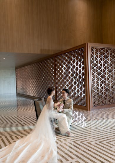 เราตัดสินใจเลือกห้องที่ใช้จัดพิธีหมั้นเป็นห้อง citrine เพราะรู้สึกว่าแสงเข้าถึงดีและเพดานค่อนข้างสูงกว่าชั้นอื่นๆ ในบรรดาห้องจัดงานที่ไม่ใช่ห้อง Ballroom และเพราะเราวางแผนจัดงานฉลองต่อที่ชั้น 6 ถ้าเลือกห้องนี้ซึ่งอยู่ชั้น 5 หลังเสร็จพิธีแขกก็สามารถเดินต่อขึ้นไปชั้น 6 ได้เลย รู้สึกว่าเป็น Flow งานที่ง่ายและแขกย้ายห้องได้สะดวกค่ะ