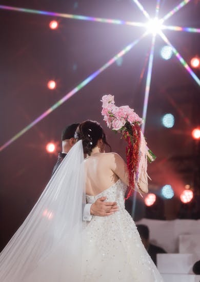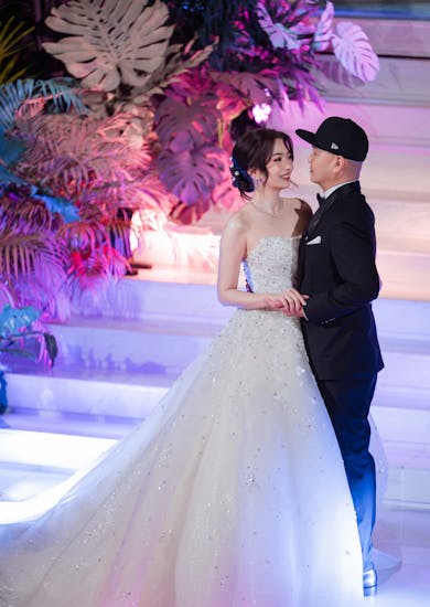 สำหรับงานเลี้ยง เราเน้นปาร์ตี้เลยค่ะ ได้ฟีลแบบคอนเสิร์ตสนุกๆ การเซ็ตอัพ ตกแต่ง เราขึ้นโครงสร้างไฟกับเวทีจัดเต็มมาก จินยังตกใจเลยว่านี่งานแต่งจินใช่ไหม เพราะเหมือนงานคอนเสิร์ตเลย มีต้องมาเช็ค Blocking แสง ตำแหน่ง เทสเสียง เหมือนจัดคอนเสิร์ตจริงๆ รู้สึกขอบคุณทางโรงแรมมากๆ ค่ะที่ให้ขึ้นโครงเสาล่วงหน้า เพราะการขึ้นโครงเสาขนาดใหญ่ช่วงโหลดของค่อนข้างใช้เวลาพอสมควร ซึ่งการขนย้ายก็สามารถจัดการกันได้ดีมากๆ ไม่มีปัญหาอะไรเลยค่ะ
