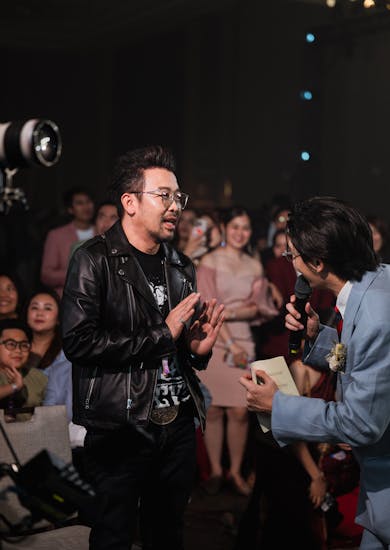 ในเรื่องของการจัดแสง ตอนแรกทางทีม Lighting ว่าจะไม่เปิดไฟของโรงแรมเพื่อโชว์ Effect แสงที่จัดมา แต่เมื่อปิดไฟทั้งหมดพื้นที่จัดงานดูค่อนข้างมืดเกินไปเลยคิดว่าหรือจะเปิดทั้งหมดดีกว่า ซึ่งพี่ชัชก็บอกไว้ว่า “จริงๆ ถ้าเปิดไฟทั้งหมดก็คิดว่าสวยเหมือนกัน เพราะเวลาที่เปิด Lighting แสงมันสะท้อนกันออกมาดูวิบวับดี” โชคดีที่พอได้ปรึกษากับทางโรงแรม ถึงได้ทราบว่าตัวฟังก์ชั่นไฟห้องของโรงแรมสามารถควบคุมได้หลายโซน ทำให้เราเลือกได้ว่าจะปิดหรือเปิดตรงส่วนไหนบ้าง สะดวกต่อการใช้งานดีค่ะ