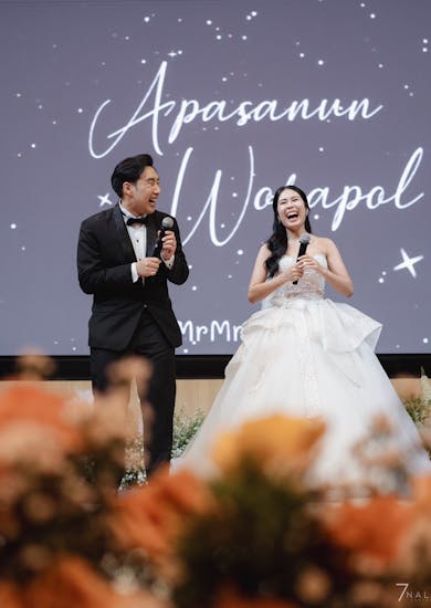 ถ้าให้เล่าถึงสิ่งที่ชอบและความประทับใจในการจัดงานครั้งนี้ อีฟเซอร์ไพรส์ที่สุดก็คือตอนเปิดตัวค่ะ เพราะตอนแรกคุยกันว่าจะให้นักร้องร้องเพลง แต่เปิดมาแล้วกลับเจอเจ้าบ่าวกำลังร้องเพลงแทน ซึ่งความหมายของเพลงที่เลือกมาก็เหมือนกับเรื่องราวความรักของคู่เราด้วย ความน่ารักก็คือเจ้าบ่าวแอบไปคุยกับนักดนตรี คุยกับเซลล์ คุยกับทุกคนเลย ส่วนเจ้าสาวไม่ได้รู้เรื่องเลย วันจริงเปิดมาอีฟนี่งงเลยค่ะ(หัวเราะ)