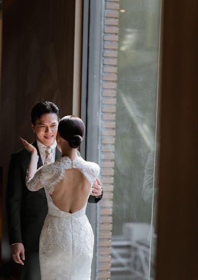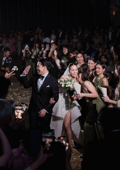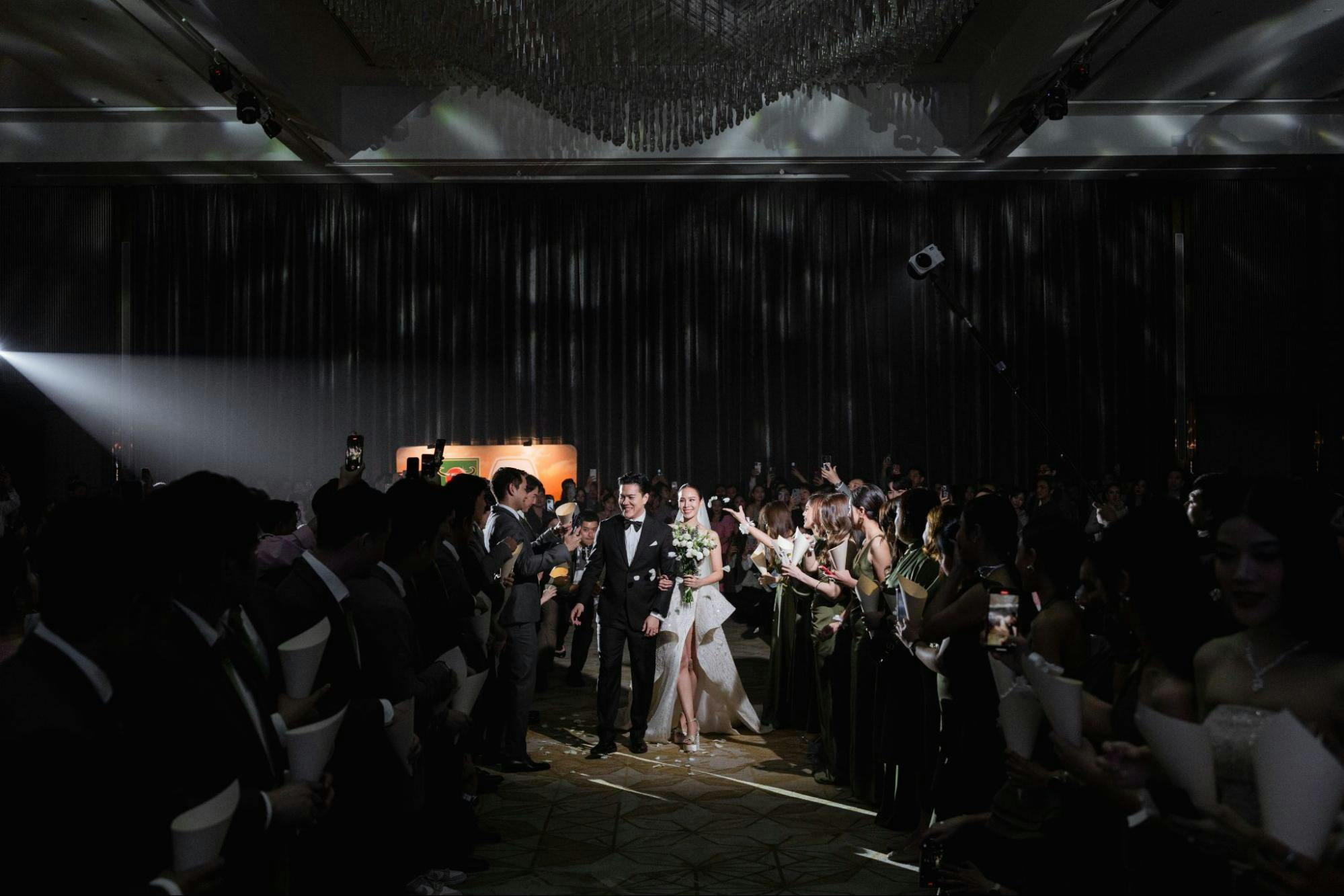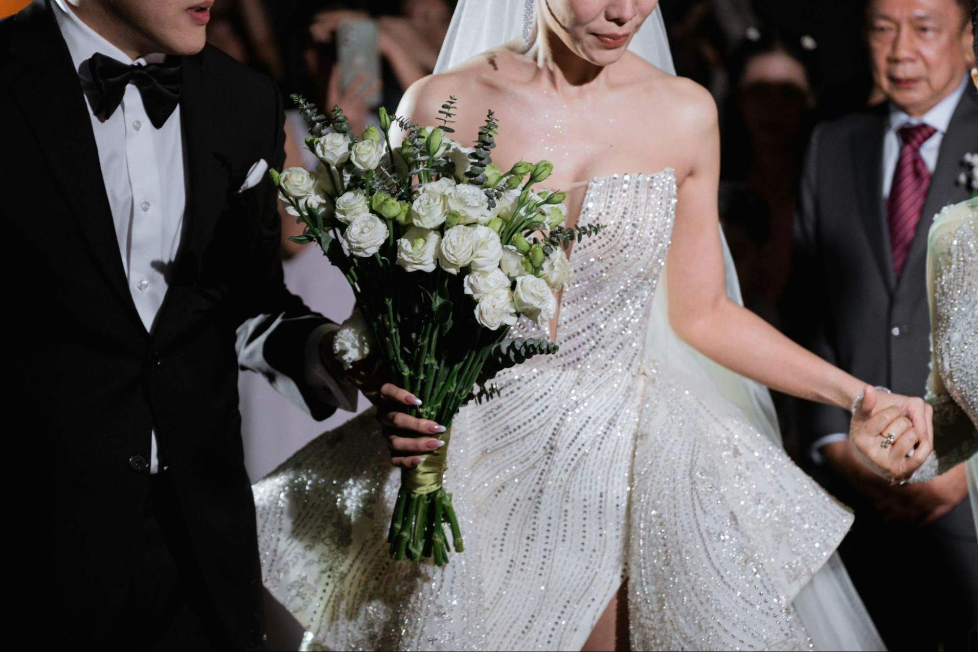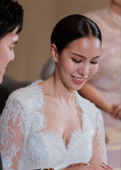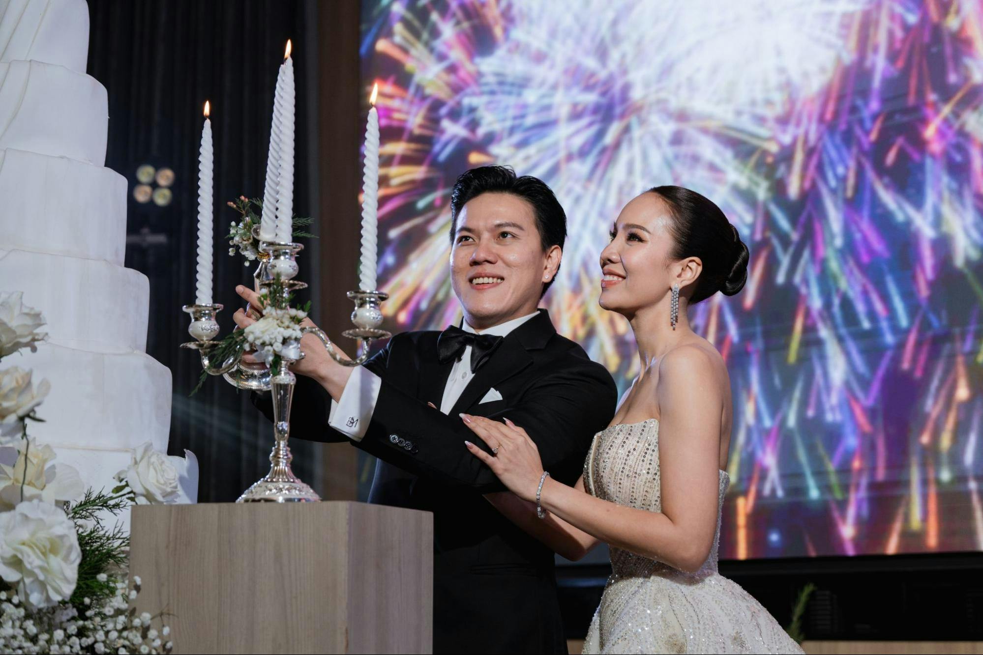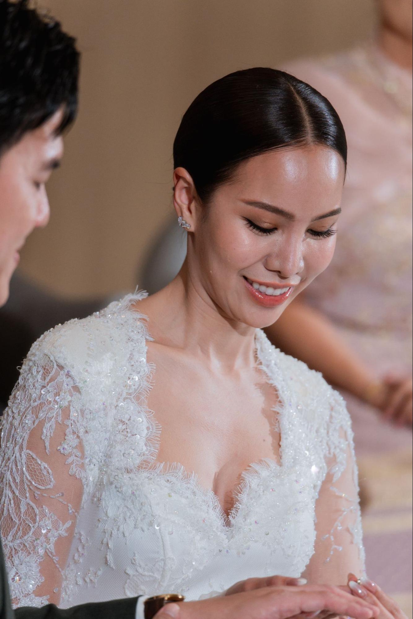 ให้มาเล่าย้อนไปในวันที่จัดงาน ใบตองรู้สึกประทับใจหลายอย่างมากค่ะไม่ว่าจะทั้งเรื่องของบรรยากาศ หรือทีมงานหลังบ้านที่คอยช่วยซัพพอร์ตอยู่เสมอ ถ้าถามว่ามีเรื่องที่ผิดพลาดบ้างไหม เราคิดว่ามันคงมีแหละค่ะ แต่คงเป็นเรื่องที่เล็กมากๆ จนเราไม่ทันสังเกตและทางทีมงานที่ช่วยดูแลคงจัดการได้จนเรื่องไม่ต้องมาถึงเรา ส่วนตัวเราโฟกัสกับบรรยากาศในงานมากกว่า เช่น โมเม้นท์ในงานตอนที่เพื่อนขึ้นพูดอวยพร เราซึ้งใจมาก ทั้งร้องไห้และมีความสุขเพราะพวกเราผ่านอะไรมาด้วยกันเยอะมากจริงๆ ตอนที่พี่ป้อง (คุณณวัฒน์ กุลรัตนรักษ์) พ่อสื่อของเราอวยพรให้ก็เช่นกัน เขาก็มาเล่าย้อนว่าเรากับแฟนมาเจอกันได้ยังไง ก็เป็นโมเม้นท์น่ารักๆ ค่ะ ที่ขำที่สุดเลยก็คงเป็นตอนที่โยนดอกไม้ แล้วเพื่อนที่รับได้คือคนที่ได้ช่อดอกไม้ในงานแต่งอื่นๆ รวมแล้วเป็นช่อที่ 10 ได้ (หัวเราะ)