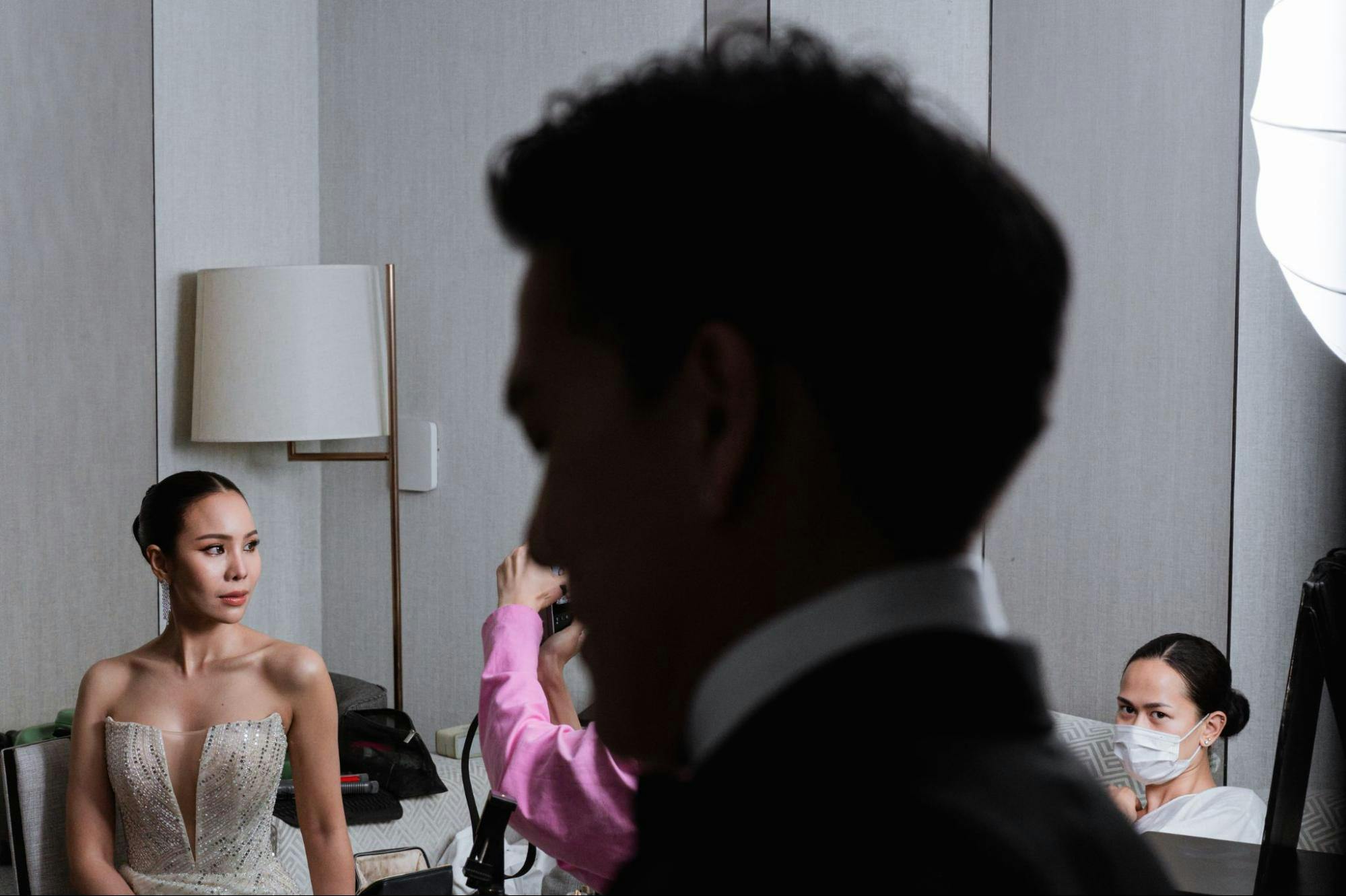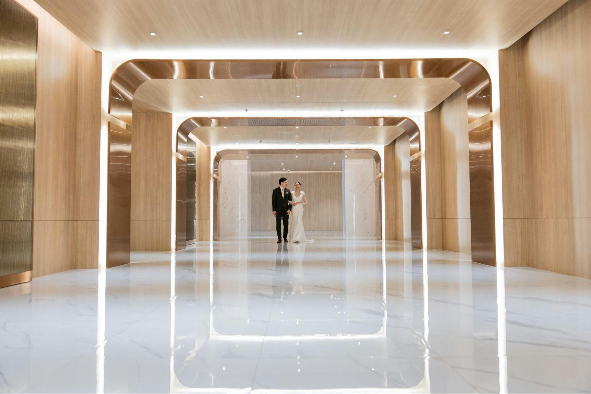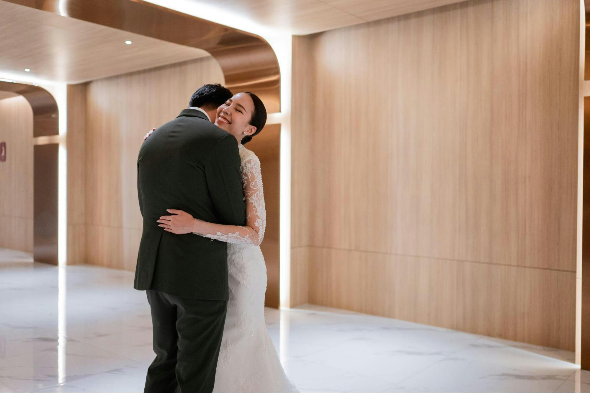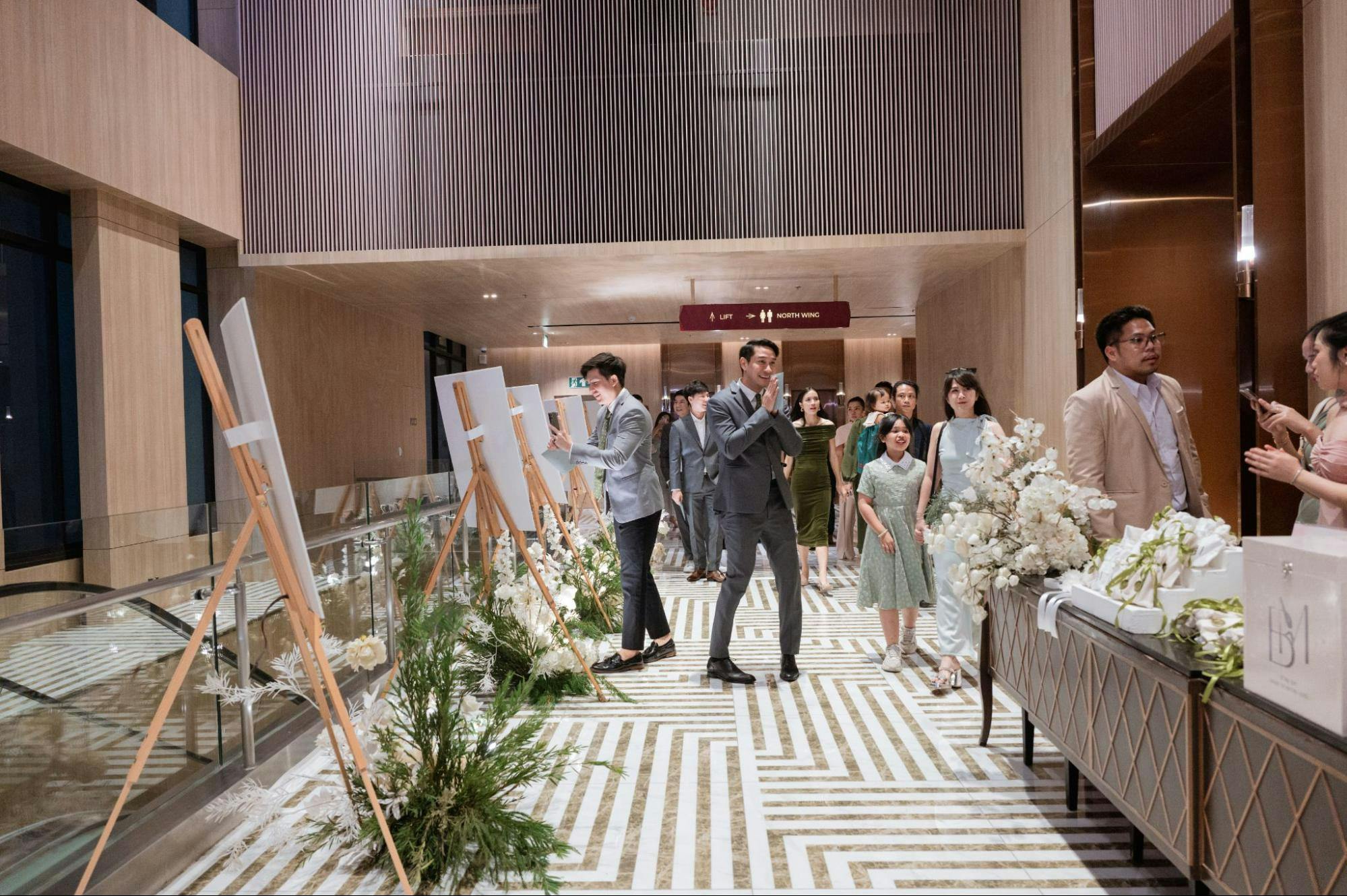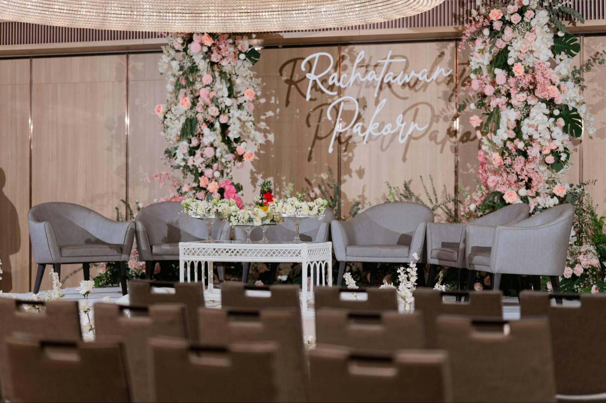 ตัวห้องหมั้นเช้าเพราะเราเน้นแค่คนในครอบครัวแขกจึงไม่ได้เยอะ ทางเซลล์จึงแนะนำเป็นห้องสำหรับ 50 คน เน้นฟีลอบอุ่นและสะดวก พอดู Flow งานก็เลยได้เลือกเป็นห้อง Sapphire Room ชั้น 3 ที่อยู่ใกล้กับห้องจัดงานเลี้ยง Diamond Ballroom ที่ชั้น 4 จบพิธีหมั้นแขกก็สามารถย้ายขึ้นไปต่อข้างบนได้เลย